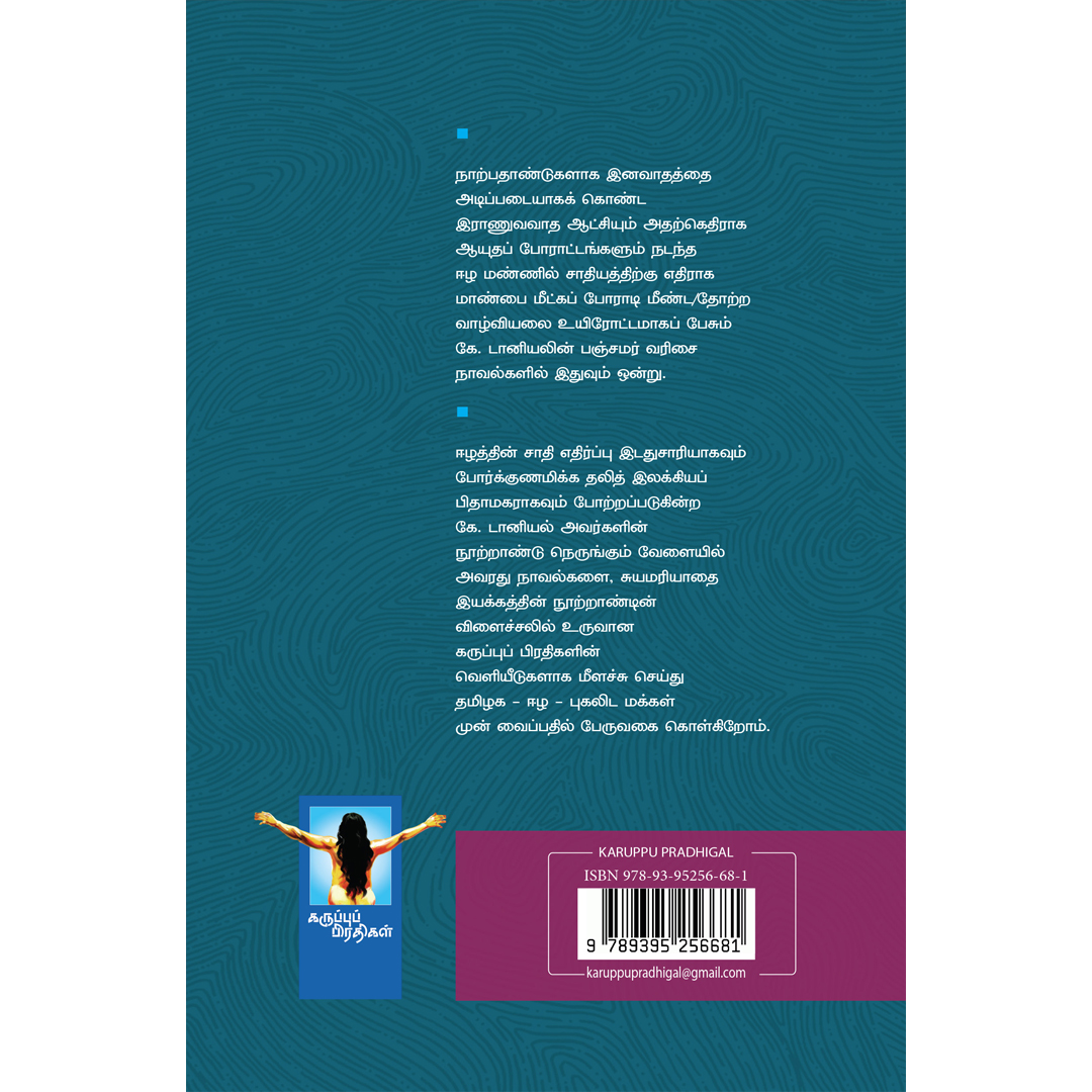 ஈழத்தின் சாதி எதிர்ப்பு இடதுசாரியாகவும் போர்க்குணமிக்க தலித் இலக்கியப் பிதாமகராகவும் போற்றப்படுகின்ற கே. டானியல் அவர்களின் நூற்றாண்டு நெருங்கும் வேளையில் அவரது நாவல்களை, சுயமரியாதை இயக்கத்தின் நூற்றாண்டின் விளைச்சலில் உருவான கருப்புப் பிரதிகளின் வெளியீடுகளாக மீளச்சு செய்து தமிழக ஈழ – புகலிட மக்கள் முன் வைப்பதில் பேருவகை கொள்கிறோம்.