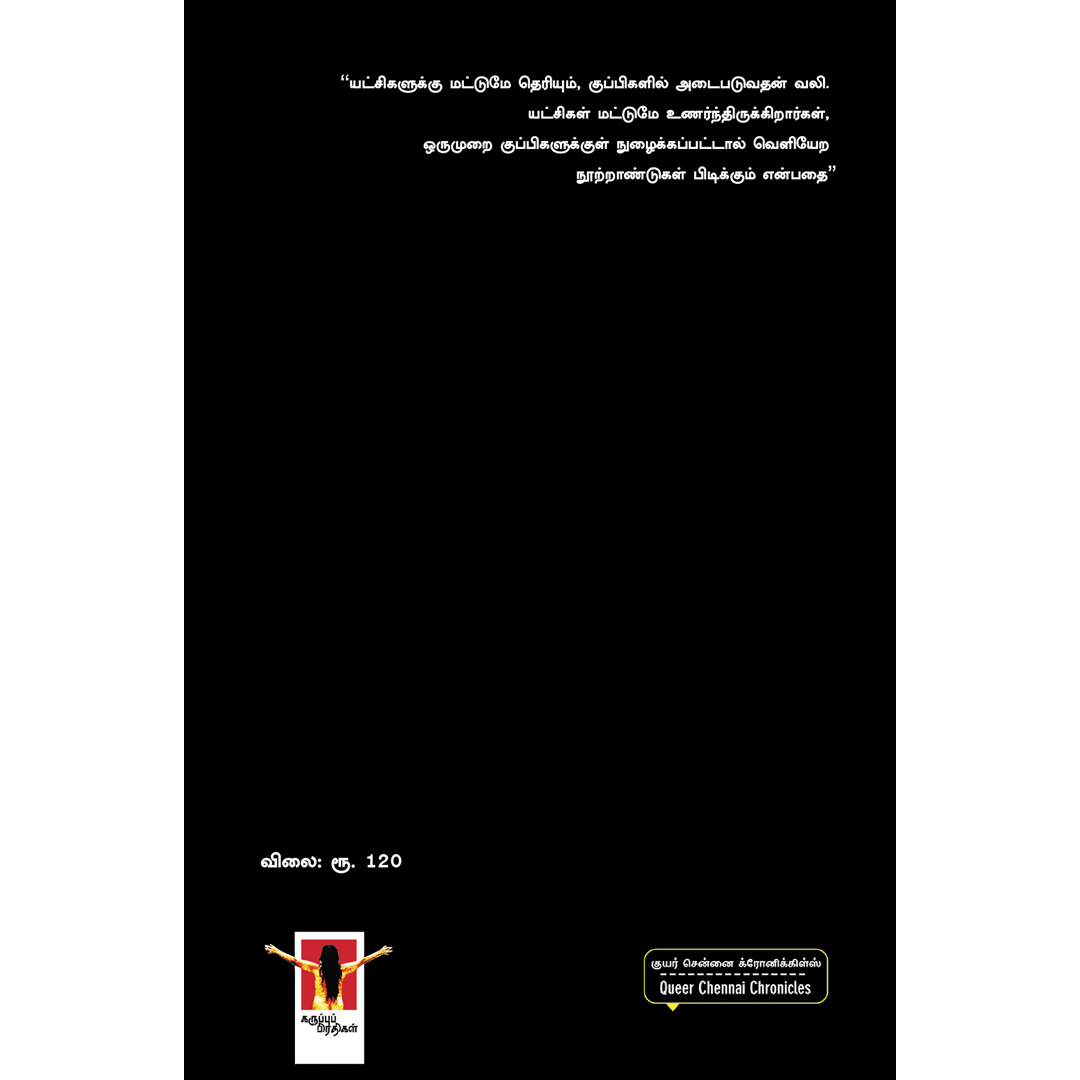 “யட்சிகளுக்கு மட்டுமே தெரியும் குப்பிகளில் அடைபடுவதன் வலி. யட்சிகள் மட்டுமே உணர்ந்திருக்கிறார்கள் ஒரு முறை குப்பிகளுக்குள் நுழைக்கப்பட்டால் வெளியேற நூற்றாண்டுகள் பிடிக்கும் என்பதை” என ஒடுக்கப்படும் LGBTQ+ சமூகத்தினரின் வலிகளையும், கரிசனங்களையும் முன் வைத்து சுயமரியாதை கோரி நிற்கிறது இந்நூல்.